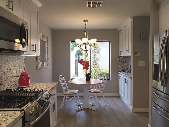 NOT YOUR TYPICAL RENTAL HOME! Contemporary EXECUTIVE-LEVEL two-story highly-appointed condo offers tons of style and upgrades! Loads of owner pride & vision invested in this property, resulting in finishes not normally found in the rental market. Modern easy-care plank flooring throughout. Dramatic, generously-sized living room will hold large furnishings and features custom fireplace to set a cozy mood! Dining area has multiple windows - almost feels like eating outdoors or in a garden atrium! Kitchen is stunning - Open views and flow throughout. STRIKING QUARTZ countertops. High-end appliance package with french-door fridge and slide-in GAS range. Adjacent Breakfast Area has dry bar and additional cabinetry and is the perfect spot for morning coffee. Guest bath on 1st level. Upstairs are two full-suite bedrooms, each with its own ensuite private full bath, featuring Quartz countertops, dual sinks and upgraded lighting & fixtures. Large walk-in closet in master bedroom. Garage will hold long vehicle and storage cabinetry and shelves will stay. Laundry area in garage comes equipped with top-grade front loading washer and dryer. Private patio out back has lovely open views and is the perfect spot for outdoor lounging or summer dining. Quiet community features 3 swimming pools Walkway access makes for short walk to all the restaurants at One Paseo shopping center and easy walk to Del Mar Heights shopping. Super location for easy access to I-5, beaches and downtown Del Mar. Ready for move-in mid April. HURRY! This one-of-a-kind property will go SUPER-FAST!! Renter is responsible for all utilities such as gas, electricity, internet, water. One dog is allowed (large or small). Due at signing - 1st and last month plus security. No smoking on property Property available mid April 1 year lease Parking allowed in 2 car garage. HOA prefers to limit driveway to 1 car. Tenant is responsible for keeping property clean. Pictures where taken from before current renter. Plan to add recent pictures.