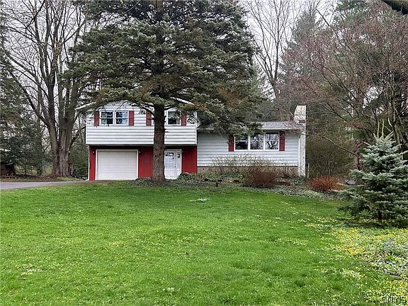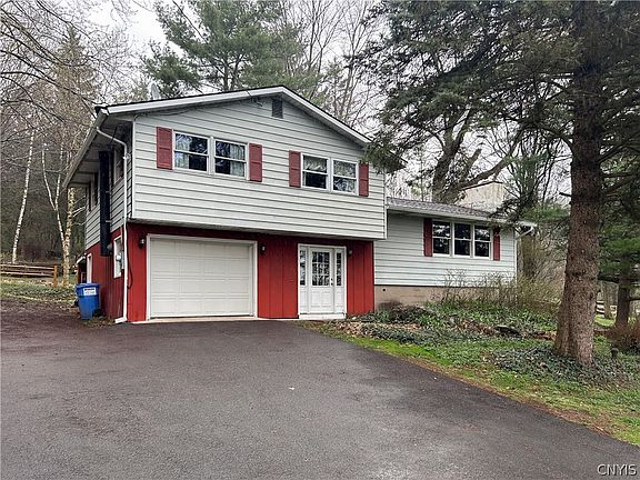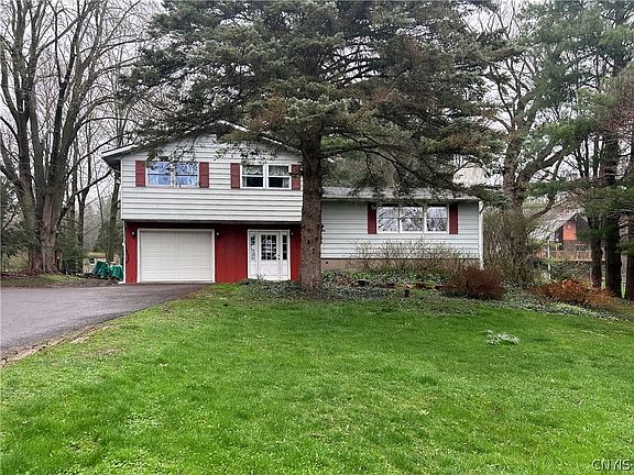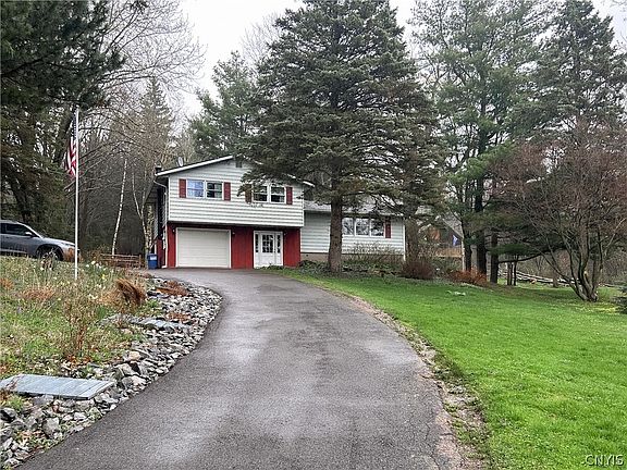 Been waiting for that perfect 4 bedroom, 2 bath home in the Onondaga Central School District? Well here it is! This owner built split level home offers over 1600 sf of living space and sits on almost 2 acres. When you walk in to the home you can be greeted with the warmth of the wood burning stove which can supplement the heat to this home! On this entry level you will find a large room that can be either a bedroom, home office or game room. Up a few stairs and you will find a large living room with fireplace and a spacious eat in kitchen! Upstairs there is a primary bedroom with private bathroom, two additional bedrooms and a guest bathroom. The basement has a large space that was used for a workshop and be repurposed to fit your needs! This 750+ foot deep lots also has a pond, multiple outbuildings and is perfect for an outdoor enthusiast. This home will sell quickly so make your appointment today!