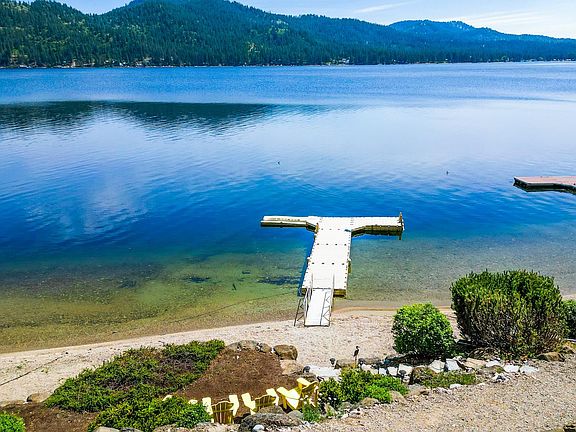 Prime Deer Lake waterfront property. This unique 1.1 acres of flat, useable land has 100 front feet of gorgeous lakefront. The 1995 2 bed, 2 bath home is light and bright with unparalled views. Home includes a loft space currently used as another bedroom. With two outbuildings you'll have room to store your toys or add additional sleeping spaces for guests. Property has plenty of room for friends and family to come if you choose. Enjoy breathtaking lake views from your deck and hot tub. Lake is easy to access via gently sloping wide walkway from the home to the beach. Summer activities include fishing, swimming, and boating right from your large Knights EZ Dock. In the winter you have ice skating, snow-shoeing and access to local ski hills. This home is located on school bus routes and county maintained roads. This property is so beautiful and special; you really have to come see it to appreciate it. (Professional photos coming Friday)