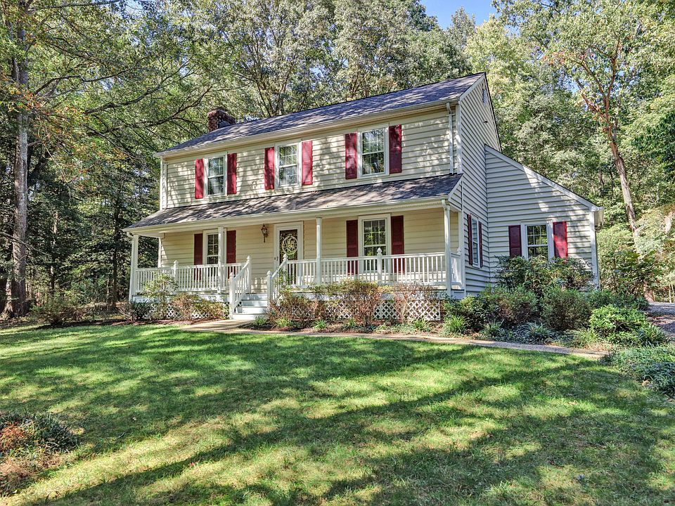 This home sparkles and shines with new renovations. It offers country living with city convenience, in Midlothian. 1.34 wooded, well landscaped, tranquil acres. Renovations include new quarts counter tops, sinks and faucets in kitchen and 3 baths. Refinished wood floors throughout. New stainless steel appliances, freshly painted cabinets and new hardware in kitchen and utility room. Freshly painted interior. New flooring in half bath and utility room. New light fixtures in dining room, baths, and stairwell. New heat pump(2019). New roof(2018). Relax on the screen porch overlooking the park-like landscaping or sit on the private, front, country porch. Vinyl siding. Huge detached shed with electricity. Large great room features brick fireplace with gas logs, plus wainscoting and crown molding. 2 closets in master bedroom(1 is walk-in). Several ceiling fans and recessed lighting. Minutes from Route 288, Midlothian Turnpike, Powhite Parkway, schools, shopping, and restaurants.