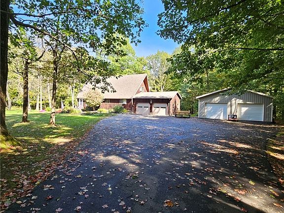 This stunning contemporary home is conveniently located just a short drive from Auburn or Moravia, offering the perfect blend of modern living and natural beauty. Nestled on 5+ wooded acres, this home provides a tranquil retreat from the hustle and bustle, making you feel like you're living in your own private forest. The spacious kitchen with a large island is an entertainer's dream, and the open floor plan seamlessly flows out to a generous deck, perfect for enjoying the serene surroundings. Upstairs offers a full primary suite with large closets and bath. With the bonus of a 24 x 40 garage, this property offers endless possibilities. Don't miss out on the chance to make this your own! No showings or negotiations until Monday 10/21