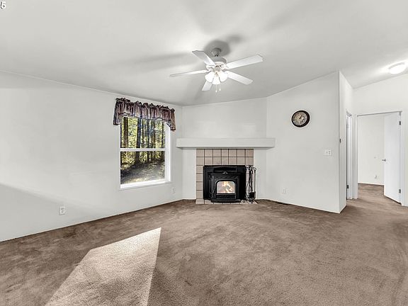 - Features: Builtin Features, Ceiling Fan, Pellet Stove, Vaulted Ceiling, Wallto Wall Carpet