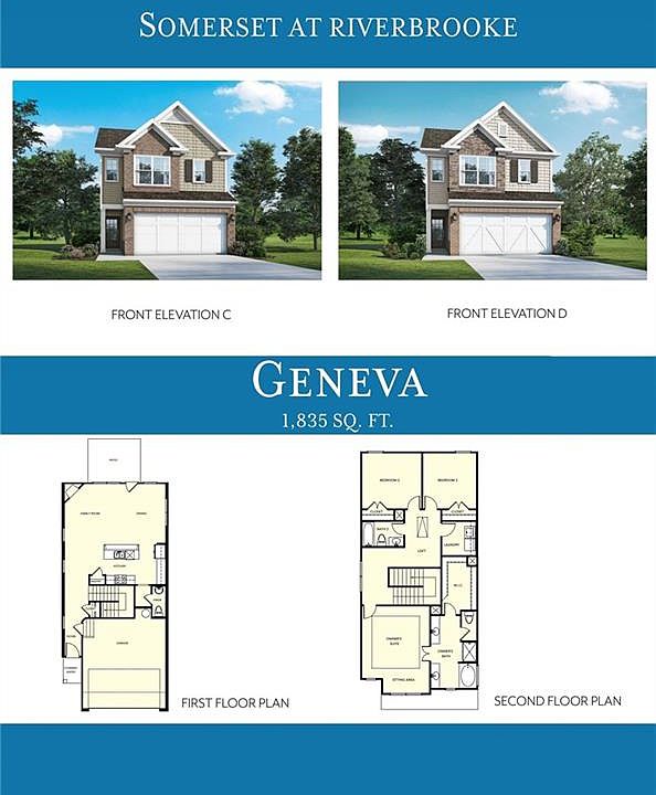 Welcome home to your new townhome in the brand new community of Somerset At Riverbrook!!!! The Geneva C plan features 1835 square feet with 3 bedrooms and 2 bathrooms upstairs and a powder room downstairs with a 2 car garage. Fireplace in the family room and the kitchen will features shaker cabinets and granite countertops. SPC flooring throughout the main floor and carpet on stairs and upstairs with tile floors in all bathrooms and the laundry. THIS HOME IS CURRENTLY UNDER CONSTRUCTION, with a completion date of DECEMBER 2024. Photos are a representation and not this home.