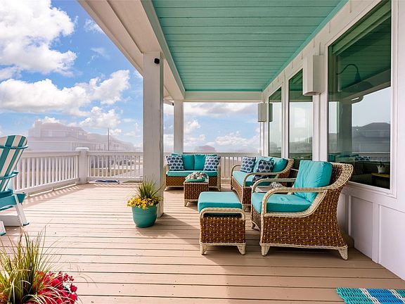In the exclusive gated Biscayne community, this stunning second row beach home overlooks a serene pond and offers beautiful Gulf views. Built in 2018 and impeccably maintained, this 3 bed, 3 bath home features an open, light filled layout with high ceilings, modern coastal finishes, a bar with sink for entertaining, and a comfortable kitchen with island seating. Spacious bedrooms with built in dressers and ensuite baths ensure guest comfort, while the primary suite provides a peaceful private retreat. Enjoy Gulf breezes and sunrise views from the front deck, and sunset views over the tranquil pond from the back. A generator adds peace of mind. Just steps from the beach and close to Crystal Beach dining and shopping, this move in ready home is ideal as a full time residence, vacation getaway, or rental investment.