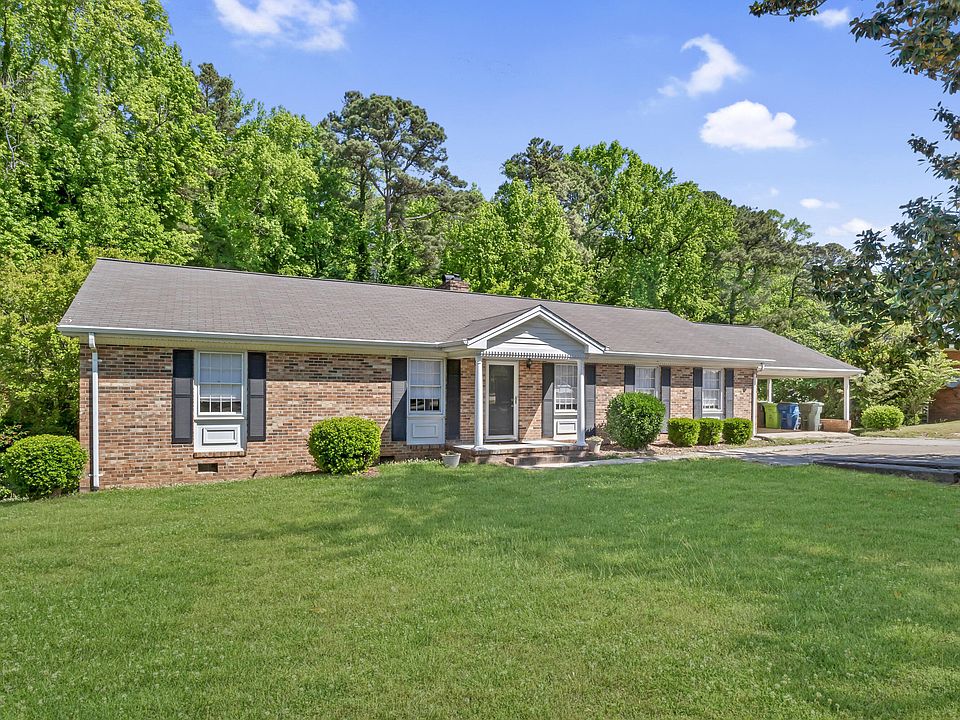 This lovely renovated ranch home is nestled in the heart of Raleigh. It boasts updated kitchen and bathrooms, with the convenience of a laundry room off the kitchen. LVP flooring graces the kitchen and family room, while hardwoods adorn the remainder of the house, with tile in the bathrooms. Featuring 3 large bedrooms. The living room flows gracefully into the formal dining room. The family room, complete with a wood-burning fireplace, opens up to the kitchen. The kitchen itself is a standout, with updated cabinets, pendant lighting, and a large bar with seating for casual dining. A carport with a parking pad provides a convenient turn-around and extra parking space. Situated on a .67-acre level lot, the property boasts a private backyard. With its brick exterior, this home exudes classic charm. It's truly a rare find in a great location, close to shopping and major highways.