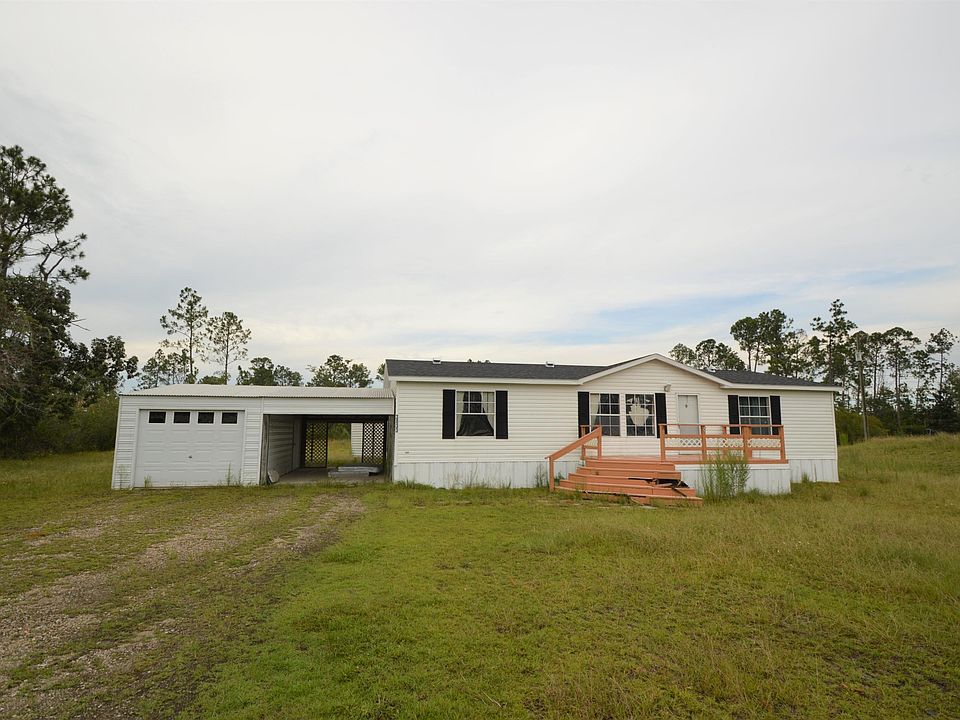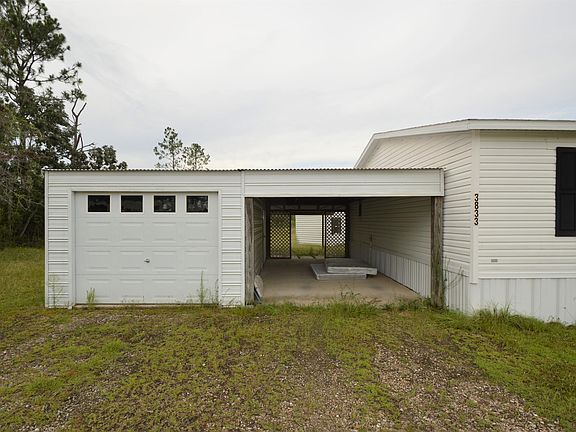 This 3 bedroom mobile home is sitting on over two acres. Roof was replaced in 2019. There is an attached carport and garage. Large front porch on the home.