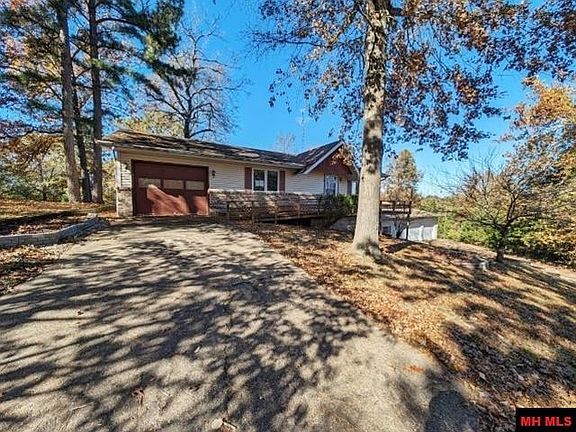 Enjoy living close to Bulls Shoals Lake and the White River with this 2 br 2 ba home on 1.08 acres m/l at the end of a dead end street in the very back of Leisure Hills S/D with 26' x 34' detached garage, attached 1 car garage, sunroom, wrap around deck, wood burning stove and so much more. All #s are approx, age is estimate, square footage & acreage per assessor, buyer to verify existence of septic.