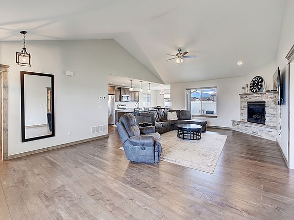 This stunning home, built in 2022, offers picturesque views of the mountains and valley. The main level has a spacious owner's suite, 3 bedrooms, 2 bathrooms, kitchen, dining room, living room, and a laundry room. The spacious kitchen features an oversized island and modern appliances, including a dishwasher, microwave, range, and refrigerator. The fourth bedroom/bonus room is on the second floor and is located above the garage. 3-car attached garage provides ample space for vehicles and storage. The lot is .49+/- acres and is landscaped with a sprinkler system and fence. There is also plenty of room for parking your RV, boat, and much more.