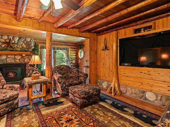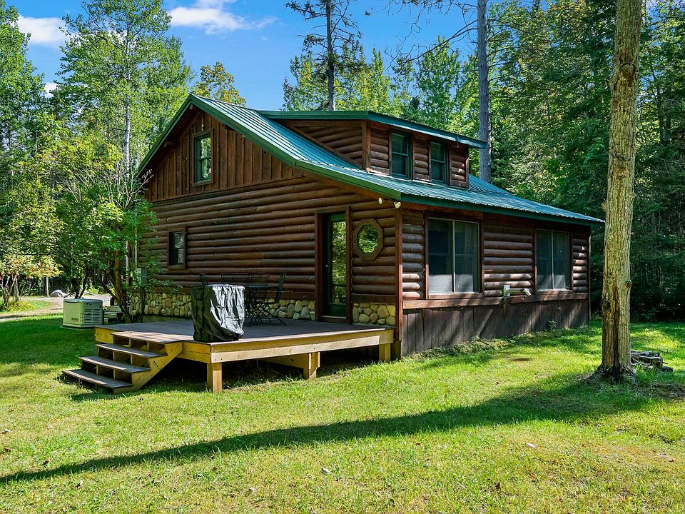 Get away from it all in a secluded cabin with pole barn on 1.6 acres. Experience a log cabin with wood floors, tongue & groove ceilings and a beautiful stone fireplace with pellet stove for efficiency. This is your ideal weekend retreat, located less than a mile from Mullett Lake and two nearby boat launches for fun on the Inland Waterway. If you enjoy biking or snowmobiling, the North Central Trail runs next to the property and makes for an easy walk or bike ride to Aloha State Park. A large living area provides a great gathering space for entertaining, and two main floor bedrooms and a spacious loft round out the package. The 24x36 pole barn is a recent addition and features a 9x16 door to accommodate a boat and trailer. Log shed w/ porch could be converted to bunkhouse or sauna. The whole house generator gives you peace of mind when you are away. This cabin is easy to get to, just 20 minutes from I-75 on a main highway, but not visible from the road. High speed fiber optic internet is available, allowing you to work while away and extend your stay. Includes most furniture and some housewares.