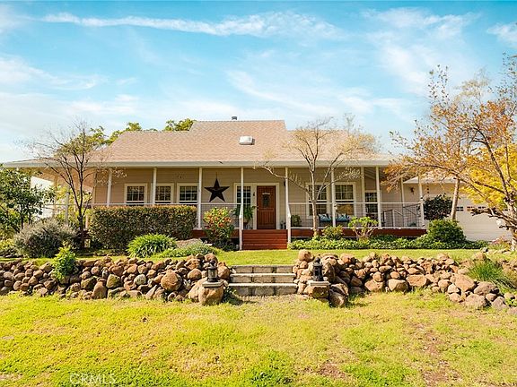 Picture perfect country living complete with the white fencing and wrap around porch and a scenic view from nearly every room in the house! Welcome to 3833 Royal Mountain, offering over 9 acres of beautiful rolling green countryside, fenced and cross fenced with a beautiful custom 2-story, 3-bedroom, plus den, 3 bath home complete with a 25X36 METAL SHOP with a 12-foot roll up door. As you enter the charming country home you will be welcomed by the large wrap around front porch, perfect for sipping iced tea! Step inside to be impressed with the beautiful entry on the main level that features bamboo flooring and a stairwell view to the upstairs area. Main living area features a beautiful kitchen with white cabinets, granite counter tops and upgraded newer stainless appliances with convenient patio access off the dining room for all your backyard entertaining. Large open floor plan features a living room, dining room with a wood burning stove and a hallway that leads to the primary bedroom, den and laundry room. The spacious primary bedroom features a walk-in closet and a private bath with double vanities, a soaking tub and a custom step in tiled shower plus your own private patio access where the hot tub awaits to take in the beautiful stary nights. Upstairs you will find two additional large bedrooms, and a third bath and don't miss the hidden access to the additional storage space in attic areas. Step outside to find all the little hidden qualities such as a 10X10 green house, 10X10 chicken coop, corral space for your horses or livestock of choice and multiple mature oaks, palms, lemons, limes, pomegranate, grapefruit & tangerines trees to make your country living bountiful. Large newer 25X36 metal shop features plenty of workspace plus two-sided covered parking areas for your large RV and storage needs (14-foot overhang on one side and 10 feet on the other). RV area is complete with RV hook-ups and second driveway access. Landscaping is complete with stone-terraced areas, a drip system and a backyard firepit to relax at after a day of exploring your land. Additional upgrades include a NEW ROOF in 2020, two separate central heat & air units for upstairs/downstairs comfort, tankless water heater, whole house fan and new flooring throughout the upstairs living area. Explore this fabulous homestead today and embrace the joy of country living at its finest!