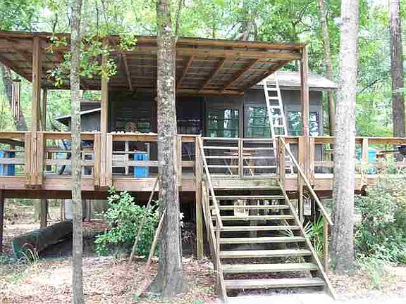 Simple River Cabin "Fish Camp" overlooks Withlacoochee River on 1 acre, 2 BD/1BTH, big deck, w & d, lots of peace & quiet, just birds, trees, deer & lots of woods. The river is clear with rapids over the rocks. Shallow shoal out front in middle of the river is just right for snorkeling. Great fishing off the banks. Located about 12 miles E of Madison. Very close to Ellaville & Suwannee River. On stilts. House went through 2009 flood & carpet was removed from home, the floors are exposed plywood. Nothing fancy here, very plain cabin but river & woodlands more than makes up for any shortcomings based on rough nature of cabin. Absolutely a slice of Heaven on Earth. No pets. Insurance prohibits killer breed dogs. The cabin is located 25 ft. inside Hamilton County overlooking the State Forest & Withlacoochee River. Roads subject to flooding.