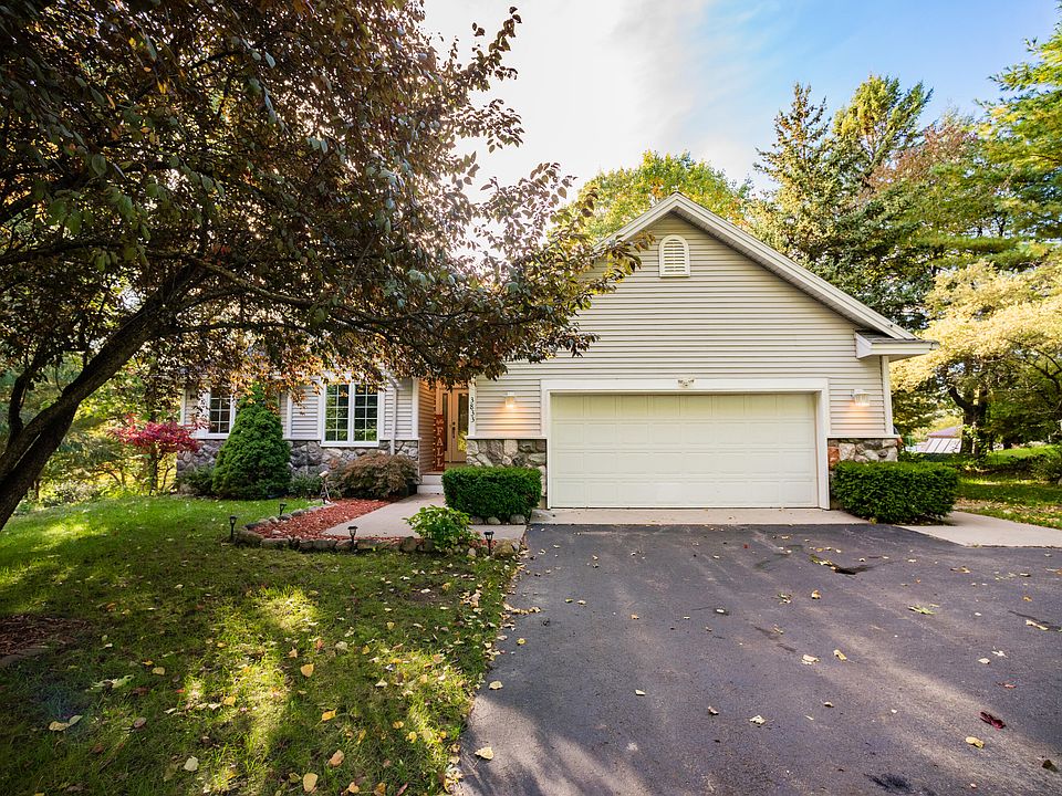 In search of the perfect family home, look no further This immaculate ranch home that fits all your family's needs only minutes from downtown Traverse City. Beyond a functional entryway space the home flows into a luminous, open-concept living room with a gas fireplace, dining, and kitchen area that has an oversized island. The home features 5 bedrooms, 3.5 bathrooms, over 3,200 sq ft, a finished walkout basement + a private master suite with double sink vanity & a large tiled shower + an elegant office space/den + a large 2 car garage & sits on 1.11 acres. Continue downstairs to a full, walk-out basement with 9' ceilings & three bedrooms with a full, double sink bath, along with another gas fireplace. Beautiful & scenic backyard with a large deck to overlook the property.