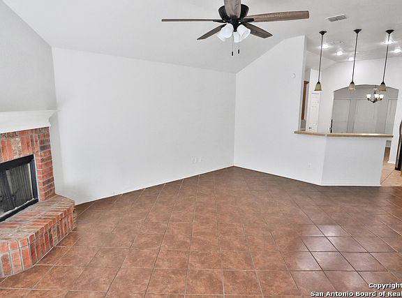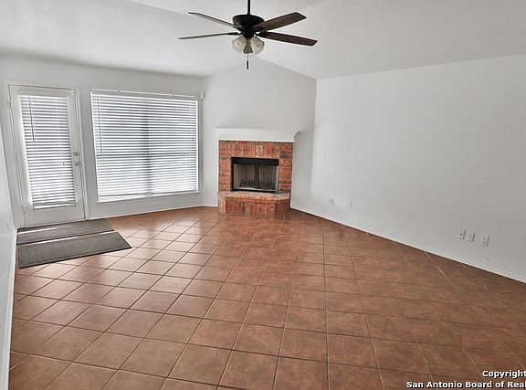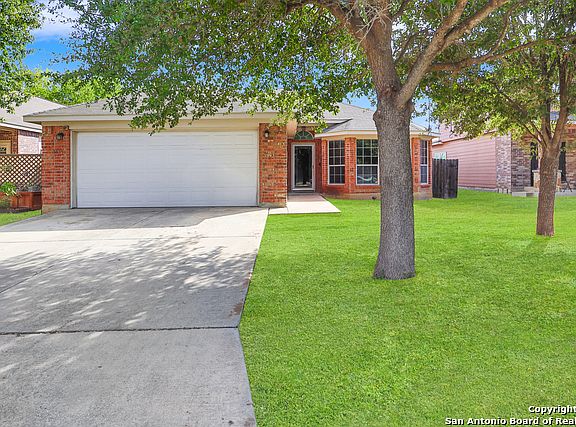 Beautiful brick one story home close to HWY 90 and 1604 near Lackland AFB. Open concept with kitchen/living room area. Living room has a fireplace for cozy nights! Separate dining room perfect for entertaining guests! Primary bedroom has large walk in closet and double vanities. Home comes with a refrigerator, water softener and ADP security system equipment. Enjoy the large backyard, perfect for family gatherings!