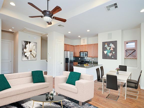 Available April 1, 2022. Lovely 2 bed 2 bath townhouse in the highly coveted gated community of Plaza At Center in the Washington Corridor area. This home is close to everything you want! Secured gated entrance with two car attached garage. Located in the sought after and popular Washington Corridor. Walking distance to some of the best restaurants, pubs and shopping in Houston. Very convenient to downtown, I-10, the medical center, and the Galleria, just to name a few. Water, sewer and trash are covered by the rent. Fridge, washer and dryer provided!