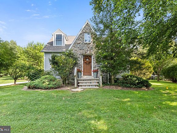 Welcome to this warm and inviting 1½ story home nestled on 2.5 acres of beautifully landscaped grounds—your own private oasis backing directly to Trail 7 of Rocky Ridge Park. Recently surveyed, this breathtaking property offers the perfect blend of timeless charm and modern amenities. Step inside to a spacious open living room featuring a dramatic stone fireplace, perfect for cozy gatherings. The remodeled kitchen is a true showpiece, boasting rich soapstone countertops, a striking copper sink, stainless steel appliances (all included), and custom cabinetry that seamlessly blends function and style. Adjacent, a bright dining room provides the perfect setting for intimate dinners or holiday entertaining. Upstairs, you’ll find two inviting bedrooms with natural hardwood floors , a generous walk-in closet off the hallway, and a beautifully remodeled bath designed for comfort and relaxation. A detached two-car garage with a full second floor offers exciting possibilities—ideal for a future art studio, workshop, guest space, or extra storage. Outside, the setting is nothing short of magical: gorgeous landscaping, a tranquil pond, and raised beds ready for your dream garden. Whether you're sipping coffee on the porch, tending your vegetables, or exploring nearby trails, this property offers a peaceful retreat just minutes from Interstate 83 and Route 30. A little slice of paradise close to all the conveniences you need—what a beautiful place to live, grow, and roam. The perfect place to call home.