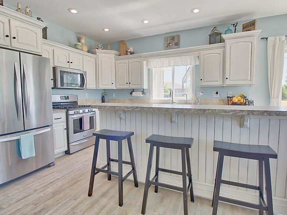 Welcome to your new home in the coveted Sherbrooke Estates subdivision in Rigby! Situated on over an acre of beautifully manicured property, this home is the epitome of comfort, quiet, & class. As you enter the home, you'll immediately fall in love with the open floor plan, living room, dining, & newly remodeled kitchen. The kitchen features glazed, white cabinetry & near-brand-new, stainless appliances. The spacious dining area, complete with extra-large windows, will be perfect for peaceful dining with an incredible view of the beautiful yard. The exceptional master suite has 3 bedroom windows, a large shower, big jetted tub, plenty of counter space, & a large, walk-in closet. You'll love the 2 additional, good-sized bedrooms with plenty of closet space. This home uniquely features 2 laundry rooms-one on each floor! In the basement, you'll love the HUGE family room, 3 great bedrooms, bathroom w/ double-sink vanity. Storage is a great feature with both cold & normal storage space, a massive 3-car garage with built-in shelves, & plenty of cabinet space throughout the home. The yard features manicured lawn, an awesome fruit orchard, large patio, established trees, & garden. For emergencies you'll love that the home is generator-ready and the well pump has a non-electric hand pump!