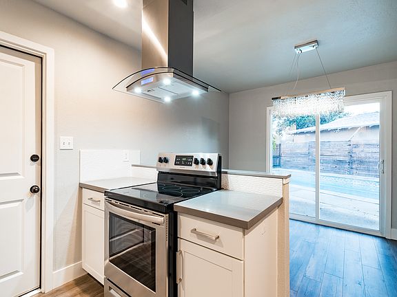 Charming and fully upgraded 4 bed, 2 bath home situated near Fresno State, close to restaurants and school. Enjoy this fully remodeled home, including plank style laminate floor, new fixtures and hardware, fresh paint, and new carpet. The home is filled with large dual pane windows providing natural light throughout. Spacious living room includes a beautiful brick fireplace, ceiling fan, and dual pane sliding door to the backyard. Enter the kitchen to enjoy French gray custom Quartz counters, upgraded cabinets, stainless steel appliances, with a dining area that features a modern chandelier and a view of the swimming pool. Master includes an ensuite bath with a standalone sink vanity and tiled shower with a rainfall shower head for relaxation. Backyard features a spacious lawn and sparkling pool, perfect for entertainment. Call our team for a private showing!