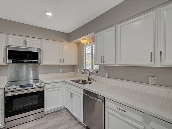 Explore this single-story home in a pool size yard. Highlights include luxury vinyl plank flooring, white kitchen cabinets, and stainless steel appliances.