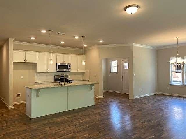 Creekwood 55 and over community Savannah featuring 3 bedrooms 2 full baths 2 car garage. Kitchen featuring 36 cabinets, Laminate flooring, granite counter tops, large Island, walk in pantry, stainless steel appliances, gas range, microwave, dishwasher. Owners suite with trey ceilings, Owners bath with a zero entry tile shower, double sinks, gentleman Ht. Vanity, walk in closet, private commode area. Two secondary bedrooms and a full hallway bath. ranch style
