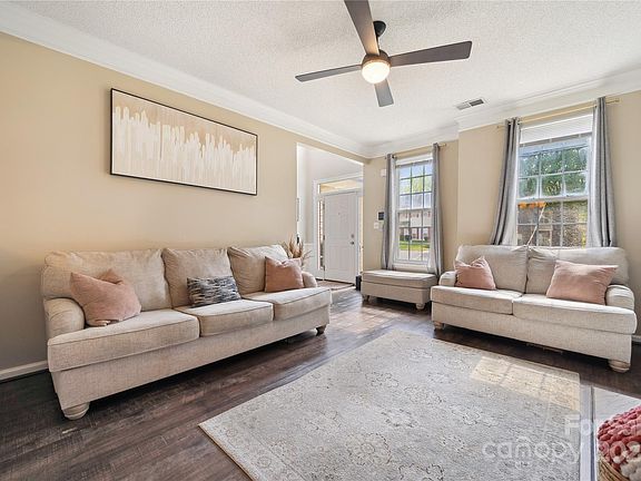 Welcome home to this stunning 3-bedroom, 2.5 bath home positioned in a cul-de-sac offering a since of privacy. Step into this bright 2 story foyer, newly painted home throughout, new LVP flooring throughout the entire main level. The great room offers a cozy gas fireplace, pass through to the formal dining room w/ a newly updated sliding glass door overlooking the semi-private backyard. The beautifully renovated kitchen & nook w/ modern white cabinets, quarts countertops, new stainless-steel appliances, tile backsplash, updated hardware & light fixtures & laundry/pantry just off the kitchen. On the upper level is the spacious primary suite w/ a vaulted ceiling, luxury garden tub w/ separate shower and dual sink vanity, & walk-in closet. Secondary bedrooms & bath. Home improvements include a new Roof installed 2018, HVAC & new garage door motor in 2020. This home is in the perfect location, close to ample shopping, restaurants, parks, greenways & UNCC. Minutes to access Hwy I-85 & I-485