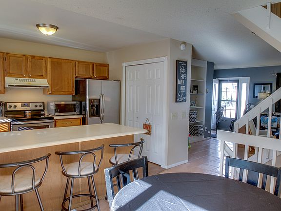 Fantastic D20 Townhome in a very desired location! This well maintained townhouse has a cozy wood burning fireplace, lots of natural sunlight, open kitchen to dining area with breakfast bar. Stainless steel appliances in kitchen. Nice laminate wood flooring throughout. The upstairs features a spacious updated full bath with new large double vanity and tons of counter space and storage! The master bedroom is spaceous and full of natural light. Nice clean brand new carpeting. All bedrooms are on the upper level!
