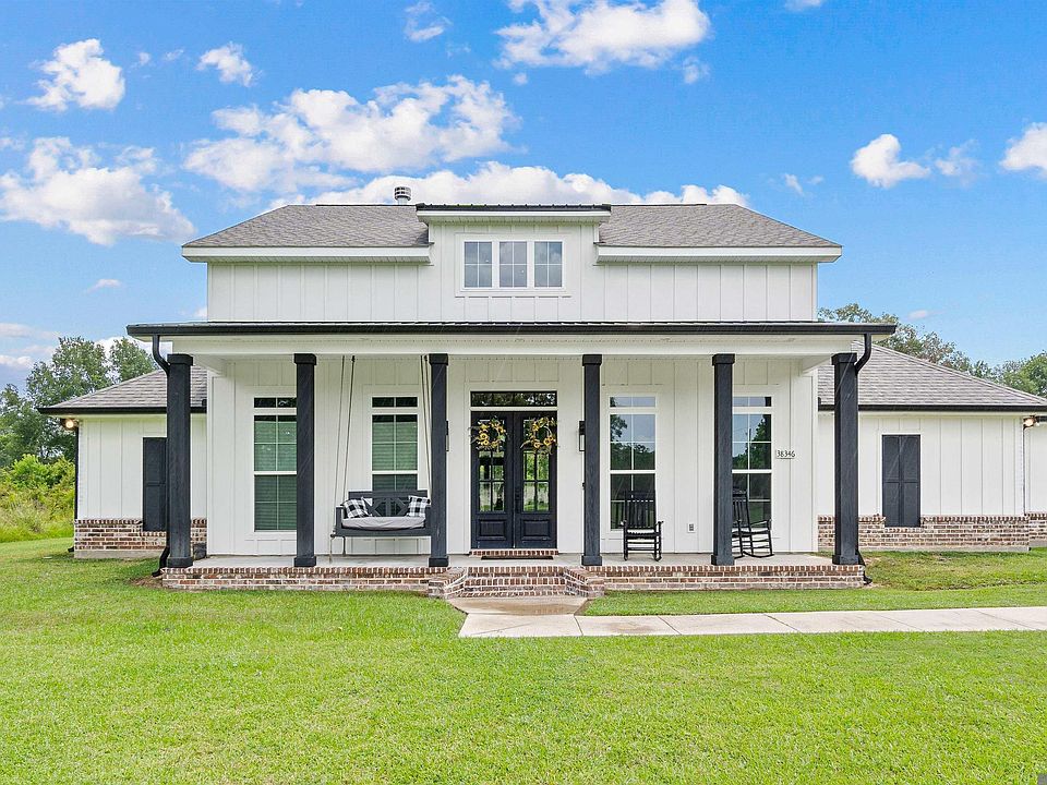 Tucked away on a quiet dead-end road, this custom farmhouse offers the perfect blend of modern luxury and peaceful country living, all within the highly sought-after Prairieville school district. Situated on 1.91 acres, this private retreat welcomes you with a classic Southern front porch featuring a swing and rocking chairs, perfect for relaxing and enjoying the quiet surroundings. Step inside and be captivated by the thoughtfully designed interior. The open-concept living area features a wood-burning fireplace, expansive windows for natural light, and luxury vinyl plank. The heart of the home is the chef’s kitchen with quartz countertops, a gas cooktop, double ovens, plenty cabinetry and a spacious scullery/ walk in pantry (which houses a second dishwasher) for all your prep and clean-up needs. There is also a separate storage pantry that is ideal for housing large appliances. The primary suite is a sanctuary for relaxation, offering an oversized bedroom, two large walk-in closets, a spa-inspired bathroom that exudes tranquility with a soaking tub, large walk-in shower, and elegant finishes. There are walk-in closets, plenty of storage throughout the home and a dedicated office space, perfect for remote work or study. Step outside to an entertainer’s paradise featuring an outdoor kitchen fully equipped with ambient lighting, two televisions, a sink with garbage disposal, bar top seating, built-in grill, wine cooler, mini fridge, dual cooktops, and a half bath making it the ultimate space for lively gatherings. Additional features include outdoor storage, and plenty of space to expand or enjoy as-is. With 1.91 acres, you can enjoy the privacy and beauty of country living while still being just minutes from Airline Highway, I-10, shopping, restaurants and top-rated schools such as Prairieville Elementary, Prairieville Middle and Prairieville High School. **Home is prewired and has a 3x5 concrete slab for generator**