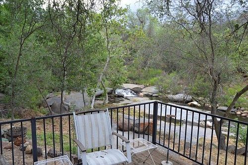 Water is plentiful here, the river running through is a beautiful sight and the well can produce 100 GPM. This home has gone through several phases of construction culminating in a large living room and master suit addition in 2007. The kitchen has been completely updated with newer appliances and excellent wood accents. Every bedroom has it own bath and great views of the river. Several out buildings one of which has been converted to a bunk house and a nice deck overlooking the river complete this wonderful property.