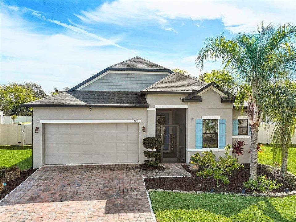Welcome to Heron Creek, your personal retreat in Florida, where luxury meets privacy with a stunning heated, saltwater pool and expansive fenced yard. This home, sprawling over 1,970 square feet, showcases impeccable maintenance and intelligent design, making it the perfect setting for both serene living and lively entertaining. With no CDD fees and low HOA dues already covered for the year, this property stands out as a must-see. As you enter, the abundance of natural light illuminates the spacious floor plan, featuring three welcoming bedrooms, two refined bathrooms, and a flexible bonus room ideal for a home office, study, or entertainment space. The heart of the home is the large, open-concept kitchen, equipped with top-of-the-line stainless steel appliances, including a newly installed dishwasher in 2023 for lasting efficiency. The kitchen boasts elegant granite countertops across a stunning 12-foot island with ample seating, a vast wall oven, and a large pantry for extensive storage. Escape to the spacious primary bedroom, complete with an ensuite bathroom that offers a large standalone shower and dual vanities, designed for a spa-like atmosphere right at home. The outdoor living space shines with Florida’s glorious sunshine, featuring the inviting saltwater pool as its centerpiece, surrounded by a lush, private yard. The patio, enhanced with a new privacy screen installed in 2024 and a television mount, is the ideal spot for poolside barbecues and sunny relaxation. This home is further distinguished by recent upgrades, including a new dishwasher, ceiling fans, and light fixtures in 2023, tropical landscaping with palms and hibiscus added in 2022, a convenient storage shed, a recently serviced air conditioning system, and a modern washer and dryer set (2022). The new patio lights and lanai privacy screen add a touch of elegance and seclusion to the outdoor area. Situated in the sought-after community of Palmetto, the home is conveniently located near esteemed schools, trendy shopping, gourmet dining, and pristine beaches, ensuring you’re never far from the vibrant Florida lifestyle. Explore the unique blend of comfort and elegance in this exquisite Florida home at Heron Creek.