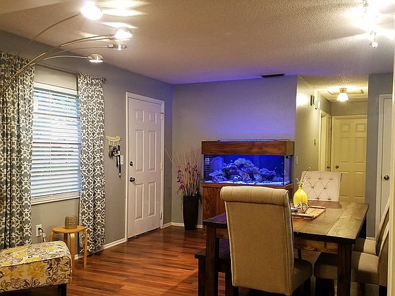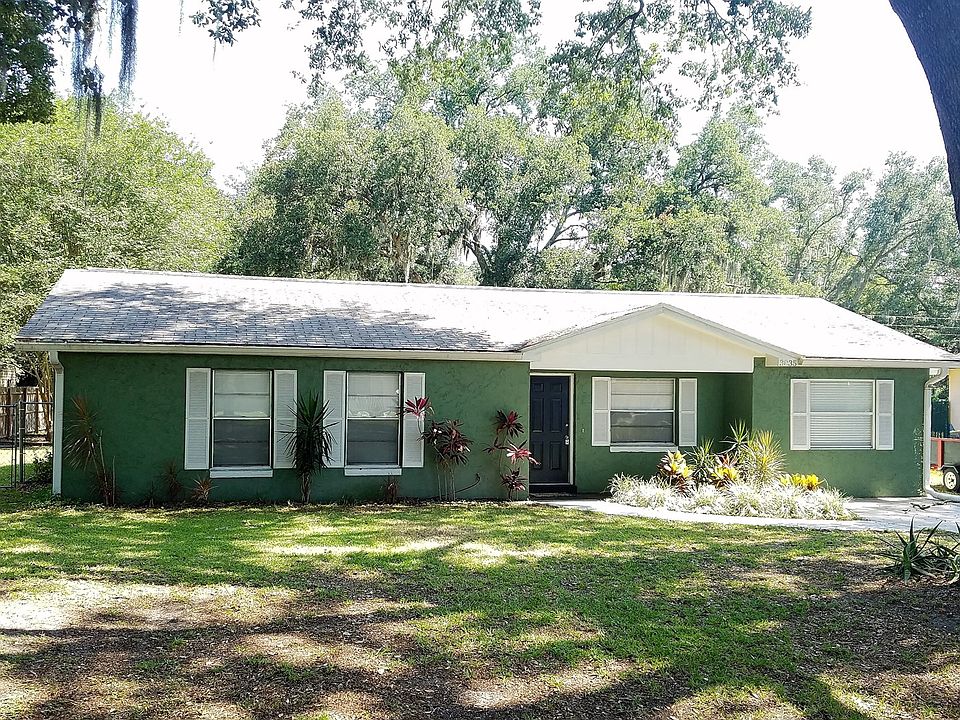 JUST LISTED! Beautifully updated 3 bedroom and 1.5 bathroom, the perfect starter home located in North Lakeland. This home has mature oak trees and easy to maintain landscaping in front and back. There is updated ceramic tile within the kitchen, utility room, and bathrooms. Wood laminate flooring throughout the open concept family room and dining area, with wood laminate flooring leading down the hall to three carpeted bedrooms. Newly painted walls throughout the entire home. The bedroom at the end of the hall is set up for a wardrobe room with a custom closet system installed and ready for use. Both bathrooms have updated vanity and mirrors. Hall bathroom has updated tile in the shower/tub. Kitchen has all stainless-steel appliances, tile back splash, wood cabinets, and features a custom bar top area with matching floating shelves. Off the kitchen is the utility room complete with water heater, washer and dryer hook ups, and custom shelving. Kitchen and dining room features modern ceiling track lighting. This home sits on a quarter acre lot with a large fenced in backyard with a shed. Backyard features a new 2018 screened in lanai with a wood plank ceramic tile accent wall, sealed concrete floor, and modern open exposed ceiling rafters. Lanai has fully functioning electrical outlets and lighting. Walk out to the paved patio underneath a custom pergola and enjoy sitting around the fire pit; perfect for outdoor entertaining. Exterior is stuccoed and newly painted. MUST SEE, MAKE YOUR APPOINTMENT NOW!!!