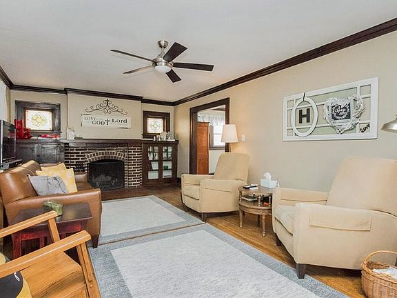 MINT CONDITION! 1920's 2story w/metal siding and charm and character has been preserved from the hardwood floors, deep baseboards, stunning staircase and hardware on the original doors. Main level boasts of a large living room with fireplace. This room opens to the formal dining room for great flow for entertaining. Updated kitchen with tons of cabinet space is accented with updated flooring. All appliances stay. Upstairs are three bedrooms with amazing closet space. Updated full bath is center stage and near all bedrooms. Lower level offers the best bathroom in the house! Gorgeous tile shower and designer vanity and fixtures make this a mini spa feel. The "man cave" is a perfect place to escape after a long work day. Several closets and storage room w/laundry finish off the space. Relax nearly year around in the enclosed front porch w/walls of windows for sunshine. Back patio has built in fire pit, gardens & HUGE 2+ garage & shed w/wood floor. Easy commute! Home Sweet Home!
