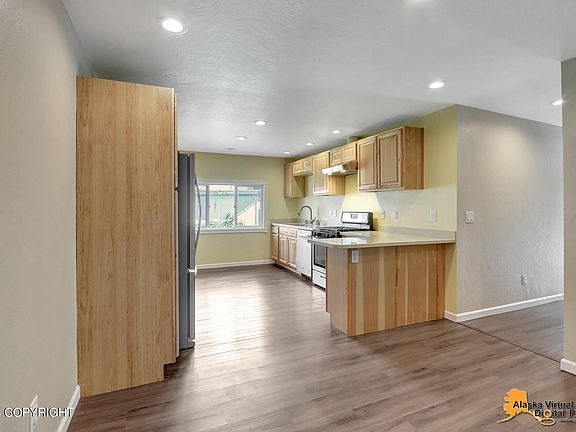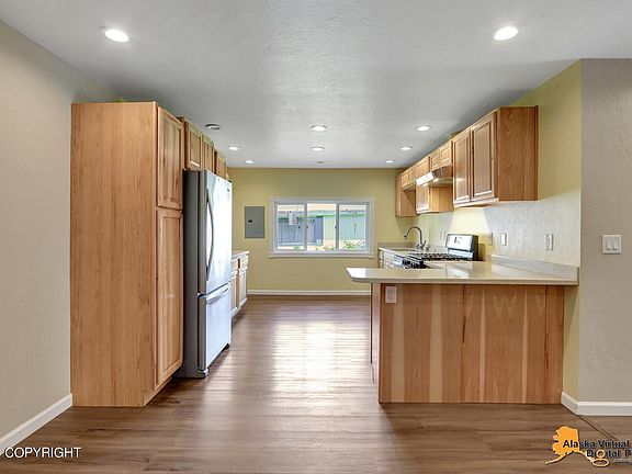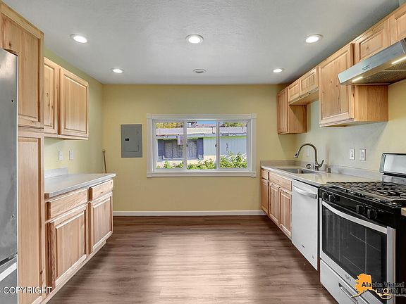 Fully remodeled single-family home in South Anchorage! Large, fenced yard with drive gate to park your toys & RV with NO HOA! Home has new kitchen, bathroom, appliances, doors, trim, paint, flooring, roof, electrical service & panel, heating system etc. 3 bedrooms, 1 full bath & an inviting open concept layout. 648 feet of attached heated storage/ workshop with full concrete foundation.Enjoy hiking & biking just one block away at Campbell Park. Welcome home!