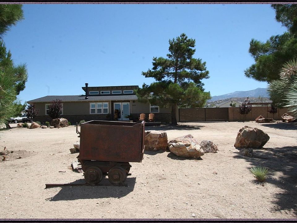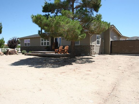 Custom Mountain Style Retreat! This striking 1,660 sq. ft. 3 bedroom, 2 bath energy efficient custom home was completely remodeled in 2012. Completely fenced with 3 rail vinyl horse fence & 2 double sliding gates (one gate is automatic solar electric with backup). 50 year roof (with low E) insulation underlayment. Delightfully landscaped with over 30 pine trees, large boulders, & other features. James Hardie fiber cement and stunning architectural rock exterior siding. Warming energy efficient Lennox wood burning stove with a meticulous rock hearth & walls in living room. Commercial grade 30 year wood grain flooring throughout. Energy efficient low-e view windows were also installed throughout home furnished with designer plantation shutters. Endless views of Wrightwood Mountains & El Mirage Dry Lake. Too many improvement upgrades to mention. Come see for yourself today! Sale includes 1 share of Sheep Creek Water(2nd share available to purchase), 1 40' cargo container(2nd up for negotiation), cord of eucalyptus wood, Jacuzzi, refrigerator, washer, and dryer.