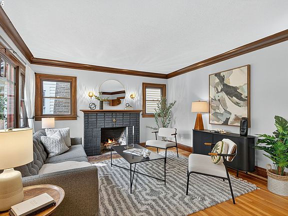 Beautiful 1927 home, in the coveted Sabin neighborhood of NE Portland. This 3-bedroom, 2-bath home seamlessly blends original charm with thoughtful updates: charm and comfort in one of the city’s most walkable and vibrant communities. Unpainted millwork, crown molding, dining room built-ins, and stunning hardwood floors that echo the home's rich Craftsman Style roots. Classic large living with wood burning fireplace, dining room with French doors to the front patio for your morning coffee. The artfully updated kitchen features stainless steel appliances, solid surface countertops and direct access to the backyard, making indoor-outdoor living and entertaining year-round. Flexible living with one spacious bedroom on the main level and two generously sized bedrooms upstairs —with ample closet space. Main and upper levels have full baths including main level period sensitive updated bath with clawfoot tub. Strong mechanicals and system updates throughout: newer 200-amp electrical panel, hot water heater, furnace, roof, updated plumbing, fresh interior and exterior paint, earthquake retrofitted. Updated wood windows bring in natural light while maintaining energy efficiency and original character. The unfinished lower level offers excellent bonus space potential, plus abundant storage. Large, private, fenced backyard with four large raised garden beds perfect for urban gardening and a patio designed for entertaining. Located just blocks from Whole Foods, neighborhood cafes, shops, and the Alberta Arts District, you’re steps from some of NE Portland’s best restaurants, parks, and amenities. With some of Portland's most desirable schools, public transit, and tree-lined streets for evening strolls, this an ideal place to call home. [Home Energy Score = 3. HES Report at https://rpt.greenbuildingregistry.com/hes/OR10241323]