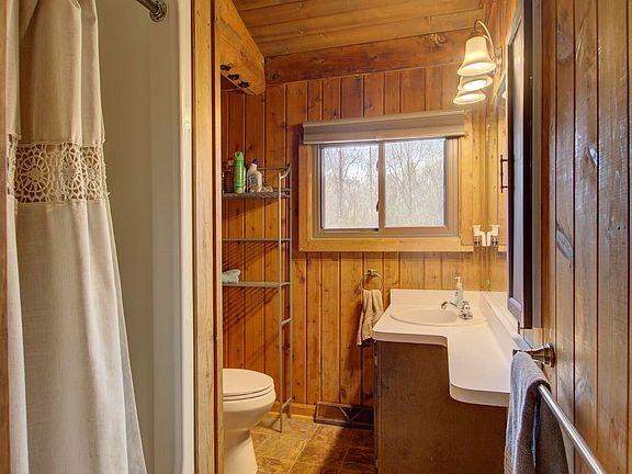 Your dream property awaits! This one of a kind, timber framed home features an open floor plan, updated throughout with quartz, stone, and new carpet on 12+/- acres! Amazing outdoor amenities include: above ground pool, a covered balcony and walkout patio overlooking the stocked and well maintained lake! Stamped concrete patios with built in fire pit. Hunting, fishing, ATV riding and swimming are just a few of the many activities here! Currently approved for Air BNB! 30x40 Pole Barn.