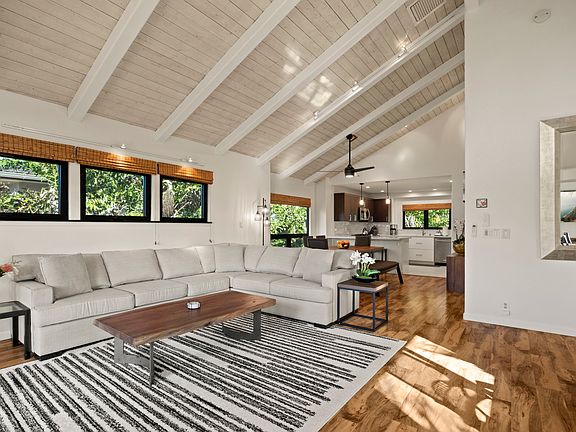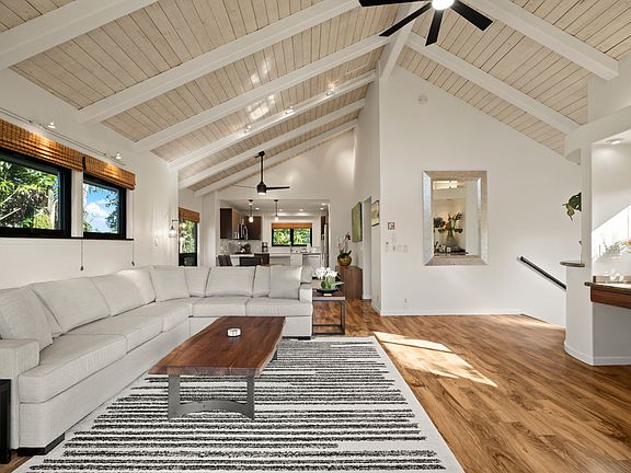 A large backyard offers room to relax and play. Ideally situated close to the 1 Hotel, shopping and other amenities. Just minutes from world‑famous Hanalei Bay, this home enjoys beautiful sunset skies and the best of North Shore living. This home is a current vacation rental.