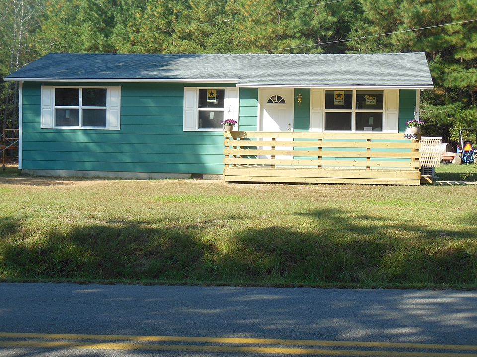 Exterior Features:Small, one-floor house with siding and new. roof. New front porch and back cement patio. Nice, rural setting. Interior Features:Interior refurbished to New condition with mostly wood laminate flooring and drywall throughout. Kitchen has tiled floors, new laminate counters and cabinets. Bathroom Is tiled.