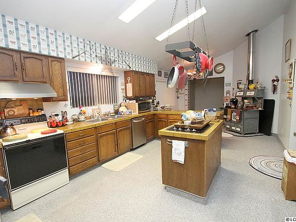 PC410 Spacious home boasts big country kitchen with Home Comfort wood stove, pantry with beautiful antique door and abundance of cabinets & counters. Formal and informal dining. Big master bdrm. Situated on very nicely low maintenance landscaped .55 AC lot with room for shop with good access.