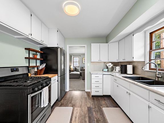 Urban-Country-Living! Beautifully maintained 1.5 story home with 3 bedrooms to include an upper level primary suite, 1 bath and an oversized 2 car garage. Enjoy peaceful sunsets and wildlife from the deck looking westward onto Lomianki park and community garden. Here is a few of the quality updates completed over the last 5 years: washer/dryer, fresh paint, siding, roof, fenced yard & many more! See supplements for complete details. Located minutes from Central Ave Commerce & Minneapolis.