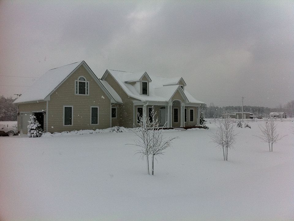 4 bedrooms, 2.5 bathrooms, formal dinning room, kitchen has a breakfast nook, huge bonus room, built in desk for bill pay station, walk in laundry room with kitchen matching cabinets and a 2 car garage with built in work bench. Hardwood, ceramic tile and carpet mix. Nice big front porch able to accommodate porch furniture. 2 bedrooms downstairs with one right off the Master can be used for a nursery or office. 2 bedrooms and 1 bathroom upstairs with huge closets. One bedroom upstairs has a mini-bonus room with chalkboard paint which kids love! The kitchen has stainless steel appliances. This house has three separate heating and cooling units which makes for quick and affordable heating and cooling. The living room has a built-in gas fireplace. Security system. Well water. Cemented Basketball hoop in the driveway. Very private with 2.5 acres. Tenant is responsible for utilities & city water.