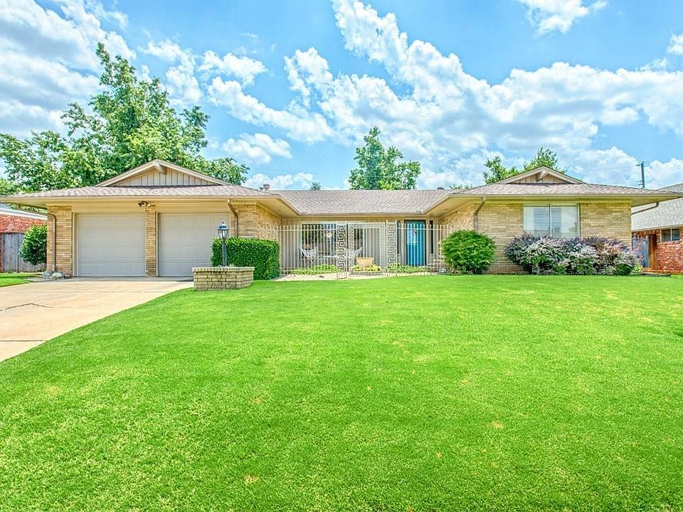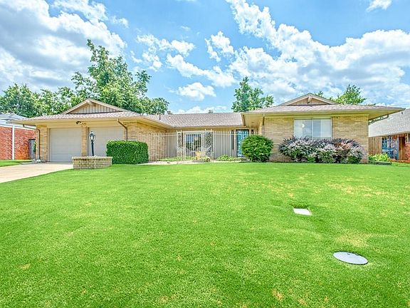 Location, Location, Location! Ready for summer with a fabulous concrete diving pool! 3 large bedrooms! Each bedroom has 2 closets! Great storage in this home! Kitchen with dinette, great cabinet space and brick floors. Large inside utility room w/built-in ironing board, built-in desk, half bath and storage! Spacious living room with large picture window and fireplace with gas logs. Formal dining. Sunroom overlooking the beautiful backyard and pool! Large master bedroom w/2 closets, fan, 2 blinds and full bath with large shower, makeup vanity, marble counter top and storage! 2nd bed with 2 closets and fan. Hall bath with marble counter, 2 sinks, makeup vanity, tub and storage! Large 3rd bed with 2 closets & fan. Much sought after Edgewater community with easy access to shopping, dining, Lake Hefner Parkway & hospitals. This area is selling fast.