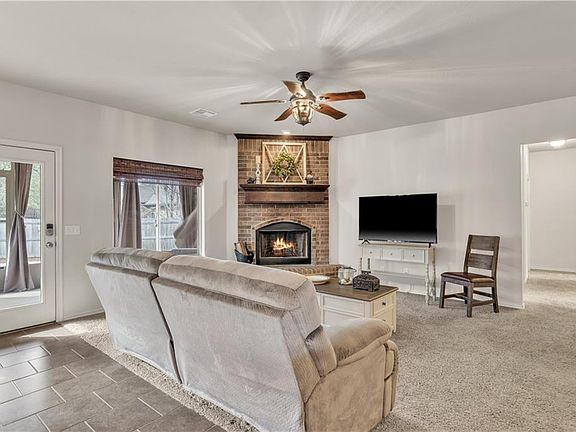 Within minutes of I-35 and Waterloo, this home sits on a half acre with lots of privacy and great views. The dedicated entry leads to a spacious living room with a wood burning fireplace and great outdoor views. The kitchen has generous cabinet and counter space, stainless appliances and granite countertops. The covered patio has been screened in for a great extra living space. The primary bedroom has a larger window to the backyard and a spa-like bathroom and spacious closet with high storage. The garage is oversized with a storm shelter.