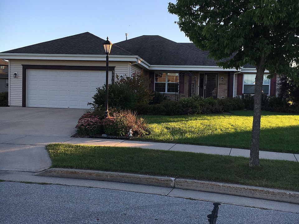 Well maintained split bedroom open concept ranch on huge semi-private lot. Newer water heater and furnace. Sound system with ceiling speakers throughout. Gorgeous tile backsplash and elite stainless steel appliances in large eat in kitchen. Cozy corner gas fireplace in large living room. Dining room offers extra seating. Nice size bedrooms. Large master bedroom with walk in closet. Private master bath boasts a jacuzzi tub and separate shower. Deck leads to private patio. Partial exposure finished well insulated lower level with 4th bedroom, 1/2 bath, living room, home theater and lots of storage. (Approx 1,000 sq ft finished)