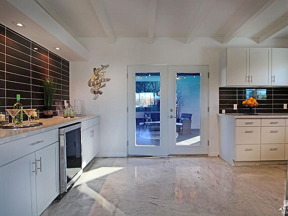 Meticulously renovated, mid-century home with custom designs that detail for an eclectic blend of modern and traditional aesthetics - The essence of high sophistication and style. Inside, awaits composed modernistic sensibility with spaces perfectly proportioned & a coveted template updated with superior attention to detail; fully functional for both private living and entertaining or simply share as the perfect 'Palm Springs' getaway retreat! Clean lines harmonize throughout from floor to walls. Elegant culinary kitchen, wet expresso bar, and stainless steel appliances. Spa-like bathrooms and an over-sized master rain shower that both can enjoy. Large breezeway with cafe style lights and a built-in BBQ in a spacious backyard featuring a vast mountain backdrop further enhance the extraordinary resort ambiance. The ideal venue for warm, poolside lounging by day, cool al fresco dining & lavish parties under the stars by night. Conveniently close to down-town & all the amenities of life.