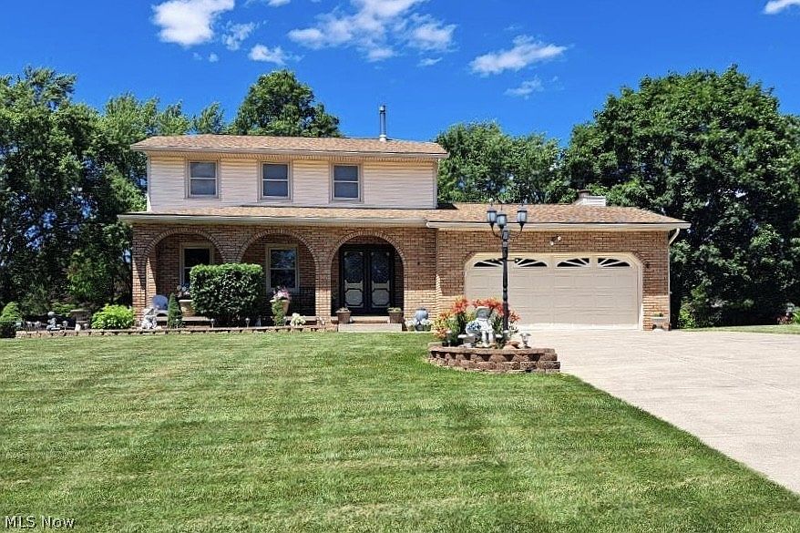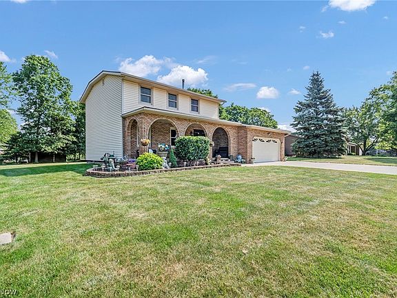 The unique structure and lovely landscaping will catch your eye when you pull into the driveway!! This beautiful colonial home has been owned and well cared for by the same family for over three decades and “well cared for” means meticulous! You will fall in love with the front porch, as it alone is like an additional living space! Enter the front door into the foyer, where the main floor features a large, formal living room, and spacious dining room. The kitchen, remodeled by Hartville hardware presents a breakfast bar/island, quality, solid oak cabinets, Cambria quartz countertops, and stainless steel appliances along with an abundance of storage. The family room, boasts a handsome brick, gas fireplace with rustic mantle, high ceilings with beams and beautiful etched sliding glass doors that lead to oversized, concrete patio. The second story features three bedrooms and one full bath. The ample-sized master bedroom has plenty of closet storage and adjoins to the full bath. The lower level is partially finished with a bar area and built-ins, perfect for a fun entertainment area. Laundry room is just around the corner with additional unfinished storage space. When you finally make your way to the backyard, you will be amazed by the endless possibilities that await! The considerable patio with partially covered pergola is perfect for entertaining with family and friends or simply there for your peaceful morning coffee time. The sizable backyard is perfect for playtime or for planting a dream garden! Two car oversize garage has water access, opener and keyless entry. Driveway, garage floor, sidewalk and patio (size increased) all in 2014. This home has been very well-maintained as all mechanicals have been serviced seasonally/annually with records to show! This super clean and solid house is move-in ready. This home holds many beautiful memories made by the family and friends of the current owner and now it’s your turn to begin making memories of your own!