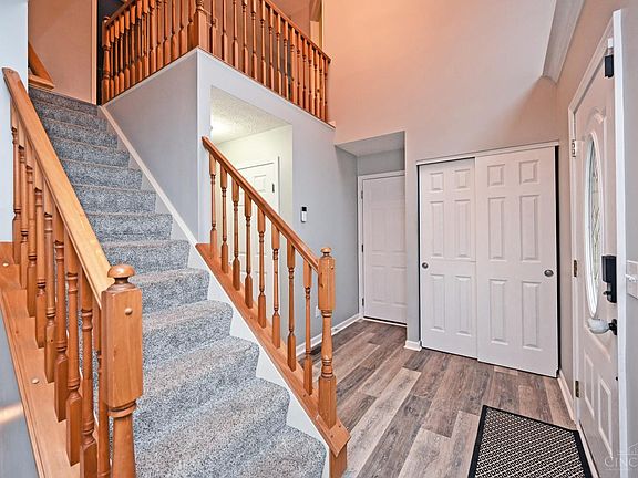 Welcome to this beautifully updated home showcasing a grand two-story entry & open, light-filled floor plan. The stunning new kitchen is a chef's dream w/granite countertops, stainless steel appliances, multiple refrigerators, huge center island, & an abundance of counter & cabinet spaceperfect for cooking, entertaining, or gathering w/friends & family & flows to the dining room & family room creating a fabulous heart of this home, flooded w/light through floor to ceiling windows. Laminate flooring flows throughout both floors for a contemporary feel. Upstairs, you'll find a luxurious vaulted primary suite w/adjoining bath w/soaking tub & walk in closet. The large 2nd floor also features convenient second-floor laundry room, huge landing & the additional 3 bedrooms have ample space. The back yard oasis has a patio, deck w/bar area, is fully fenced. Basement has studs ready to finish w/bath rough in. True move in condition w/AC 2019 & Furnace 2022.