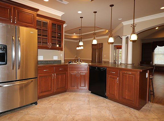 Surprisingly Spacious. Quality details abounds! Over 2600 sq ft. Crown molding. Trey ceiling. Fireplace. Custom built-ins. Arches & Columns define Great Rm. Open Kitchen w/ appliances! 5-burner gas range. Solid cherry cabinets. Counter-top bar. 2 Pantries. Study/den currently used as music rm/ home office. You'll love the suite design. Generous sized Owner suite w/ trey ceilings; Bath w/ walk-in tub upgrade, separate shower, walk-in closet. XL 2-car garage w/ water spigot. Mud rm w/ sink. Storage Galore. Parking for 6 vehicles. Dimensional Roof. Enclosed Patio provides year-round enjoyment