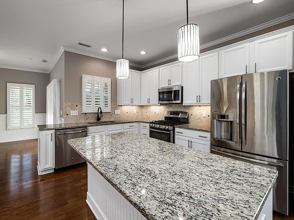Easy Heritage living! Primary bedroom, + formal dining room/3rd bedroom/full bath and hardwood flooring on the main level. Spacious living room with cozy fireplace that opens to the gourmet kitchen with huge island. Enjoy morning coffee on the private screened porch. Second floor has guest suite & full bath with a walk in attic. So many upgrades; plantation shutters & blinds, custom designed closets, upgraded HVAC, floored attic for extra storage, deluxe fridge, washer & dryer are included so you can move right in! Be sure to enjoy parks, close access to greenway, semi-private golf, and a pool available for private membership.