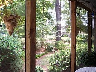 Enjoy exceptional golf course views of the 8th fairway at Echo Farms from 17 X 17 screened porch, 17 X 14 deck, breakfast nook and living room. Low maintenance, all brick patio home has freshly painted interior with an open, split bedroom floor plan. Cathedral ceilings and gas log fireplace in large living room. Formal dining room and spacious kitchen with breakfast bar, pull-out cabinetry shelves, new flat top range/oven. Yard has loads of beautiful azaleas, sprinkler system front and back, $83 per month HOA dues includes all yard maintenance. Other features include plantation shutters, garage shelving, natural gas heat, community sidewalks, and American Home Shield warranty. Affordable memberships for golf, tennis, or pool available at Echo Farms Country Club are optional.