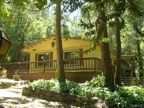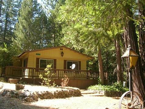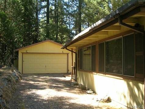 Lots of decking to enjoy the surrounding forest (three sides of home). Spacious manufactured home has both living room and family room, plus an enclosed porch. Unknown if the porch is permitted; home was purchased that way years ago. Detached two-car garage. Included in the sale are a washer, dryer and refrigerator. Furniture remaining in the home (sofas, chairs, lamps, dining room table and chairs, etc. are reasonably negotiable for sale...or se ller will have them removed. Same is true for contents of garage. Property consists of two adjacent parcels. The home and garage are on one parcel; the other offers privacy, room for garden, parking your boat, etc.Parcel numbers are 058-370-003 (home) and 058-370-002 (extra land). Annual assessment of $160 per lot per year covers road and meadow maintenance.
