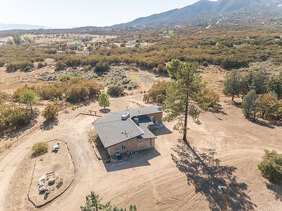 Amazing ranch property in Anza. This property has so much potential!! The lot size is 80 Acres with lots of usable and relatively flat pasture land. There is a seasonal pond and trails throughout the property. The home is an adobe home approximately 2895 square feet with 3 bedrooms and 3 bathrooms. There is an enormous fireplace in the living room and an additional fireplace in one of the bedrooms, wood beam ceilings. Large dining room can accommodate the largest of dining room tables. Kitchen has granite counter tops and pass thru window into dining room. Upgraded carpet and travertine tile throughout home. There is a laundry room off the kitchen and a separate storage room, there is also central air and heat. The property is serviced by a private well, and there are two storage containers included. Wonderful views of surrounding mountains and valley. Live here and feel so far away, yet close to Temecula, Palm Desert and Idyllwild and only 2 hour drive to Los Angeles or San Diego. Please do not go on the property without a Realtor. Property to be sold AS-IS and most furnishings will be included.